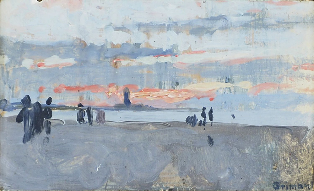 Guido Grimani Trieste 1871-1933 "Camminata verso sera" cm. 8x13 - olio su compensato Firmato b. a d.