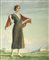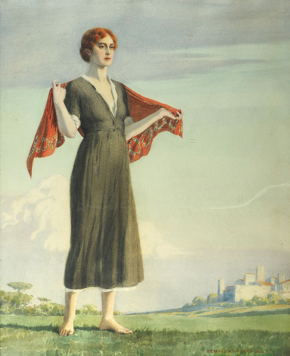 Oscar Hermann Lamb Trieste 1876-Vienna 1947 "In posa nel paesaggio" cm. 72x60...
