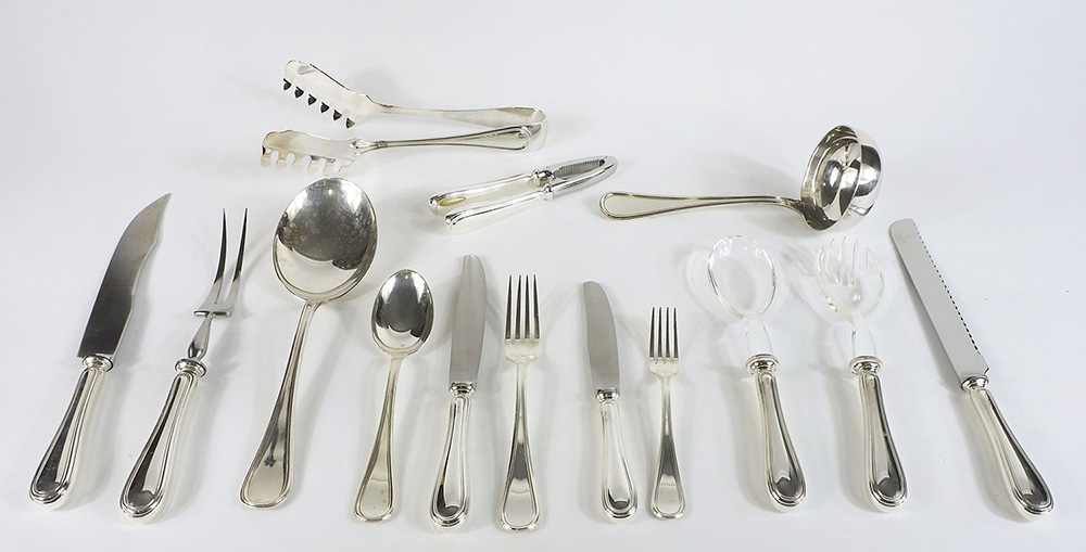 Servizio di posate per 12 persone in argento composto da 68 pezzi. gr. 3170.
