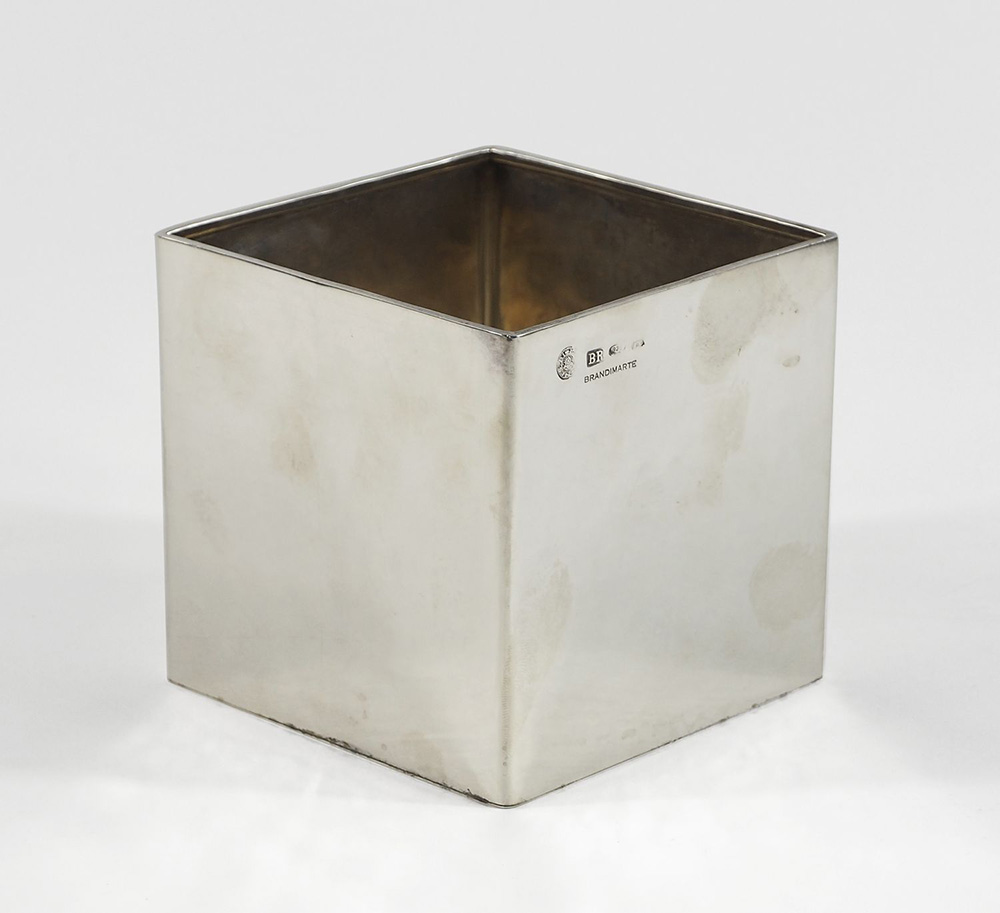 Brandimarte: cubo portafiori in argento 925 martellato. cm. 10x10x10. gr. 315.