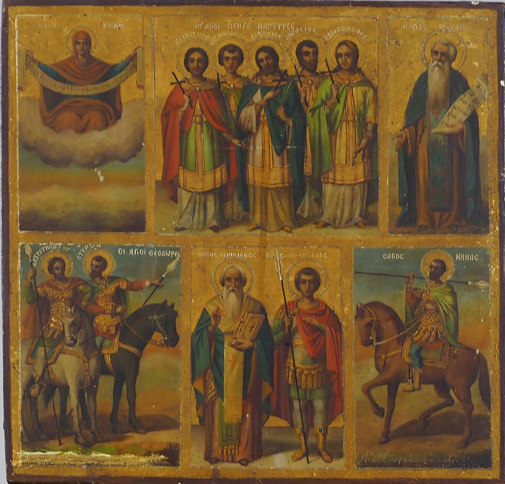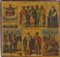 Icona dipinta raffigurante santi, cm. 29x30. (difetto).