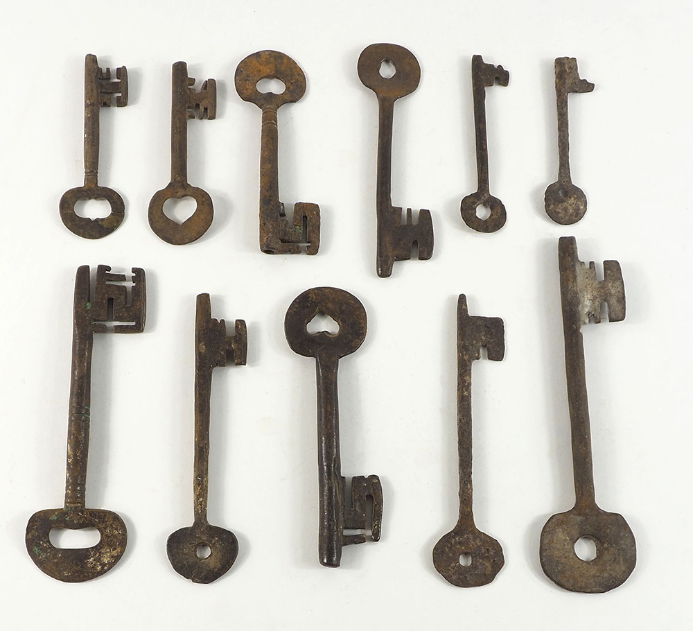 Lotto 665 | Lotto di varie chiavi in ferro lavorato. Epoche diverse.