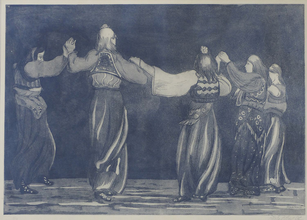 Miha Males 1903-1987 "Ballo popolare" cm. 38x52 - incisione Firmato b. a d. Esemplare 1/4.