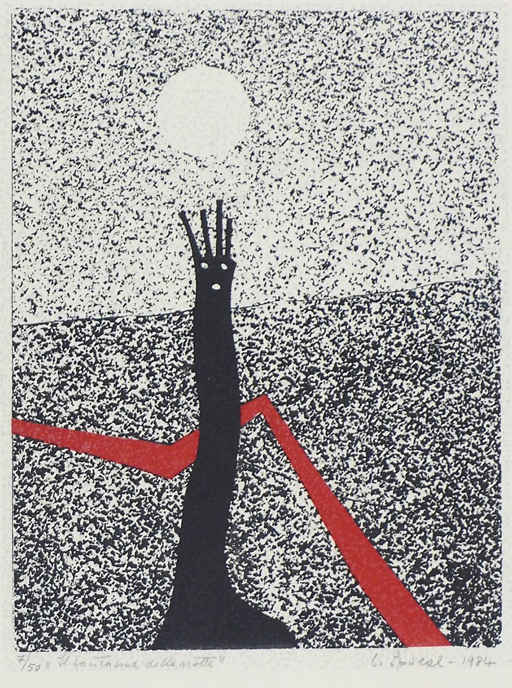 Luigi Spacal Trieste 1908-2000 "Fantasma della notte" cm. 45x35 - incisione a...