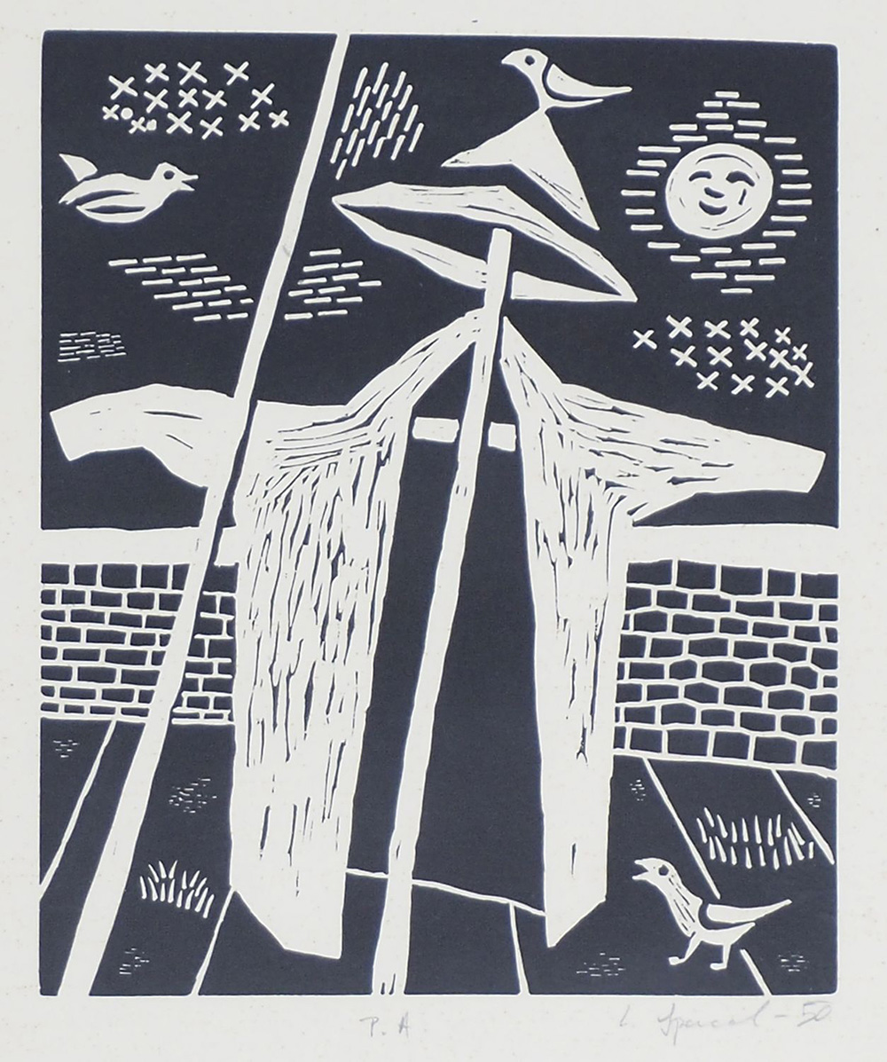Luigi Spacal Trieste 1908-2000 "Spaventapasseri" cm. 32x24 - incisione Firmato b. a d. e datato '50. Prova d'Artista. Prov.: asta Stadion Trieste 12/2011.