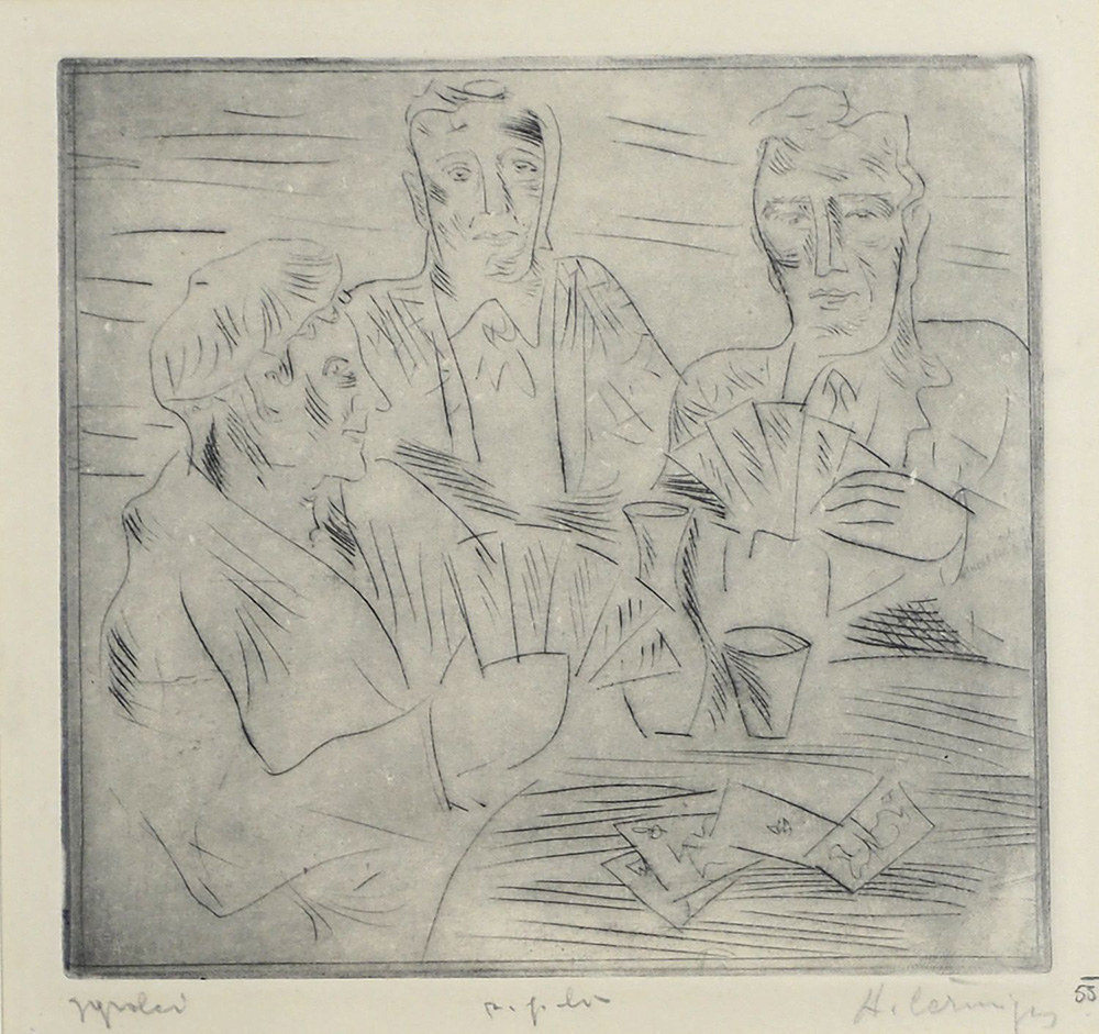 Avgust Cernigoj Trieste 1898-Sesana 1985 "Giocatori" cm. 17x19 - incisione...