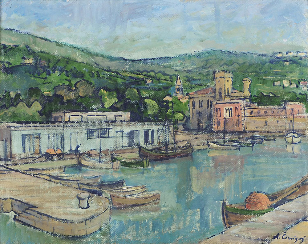 Lotto 724 | Avgust Cerniigoj Trieste 1898-Sesana 1985 "Squero a Barcola" cm. 36x46 - olio...