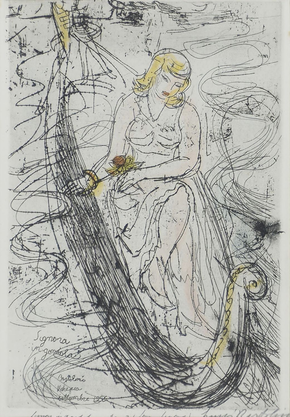 Luigi Bartolini 1892-1963 "Signora in gondola" (1956) cm. 33x23 - incisione...