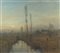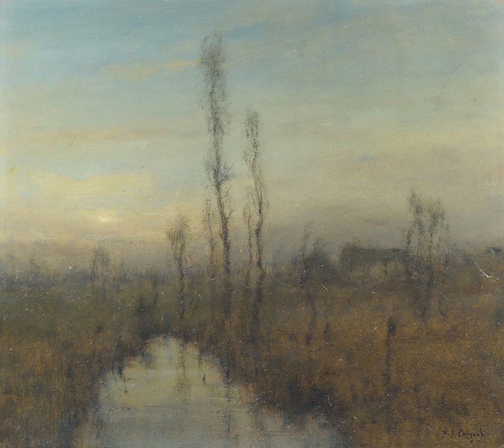 Vittore Antonio Cargnel Venezia 1872-Milano 1931 "Sera a Brughiera, Autunno 1925" cm. 45x52 - olio su cartone Firmato b. a d. Al retro titolo, data 1925 e indirizzo milanese dell'Artista.