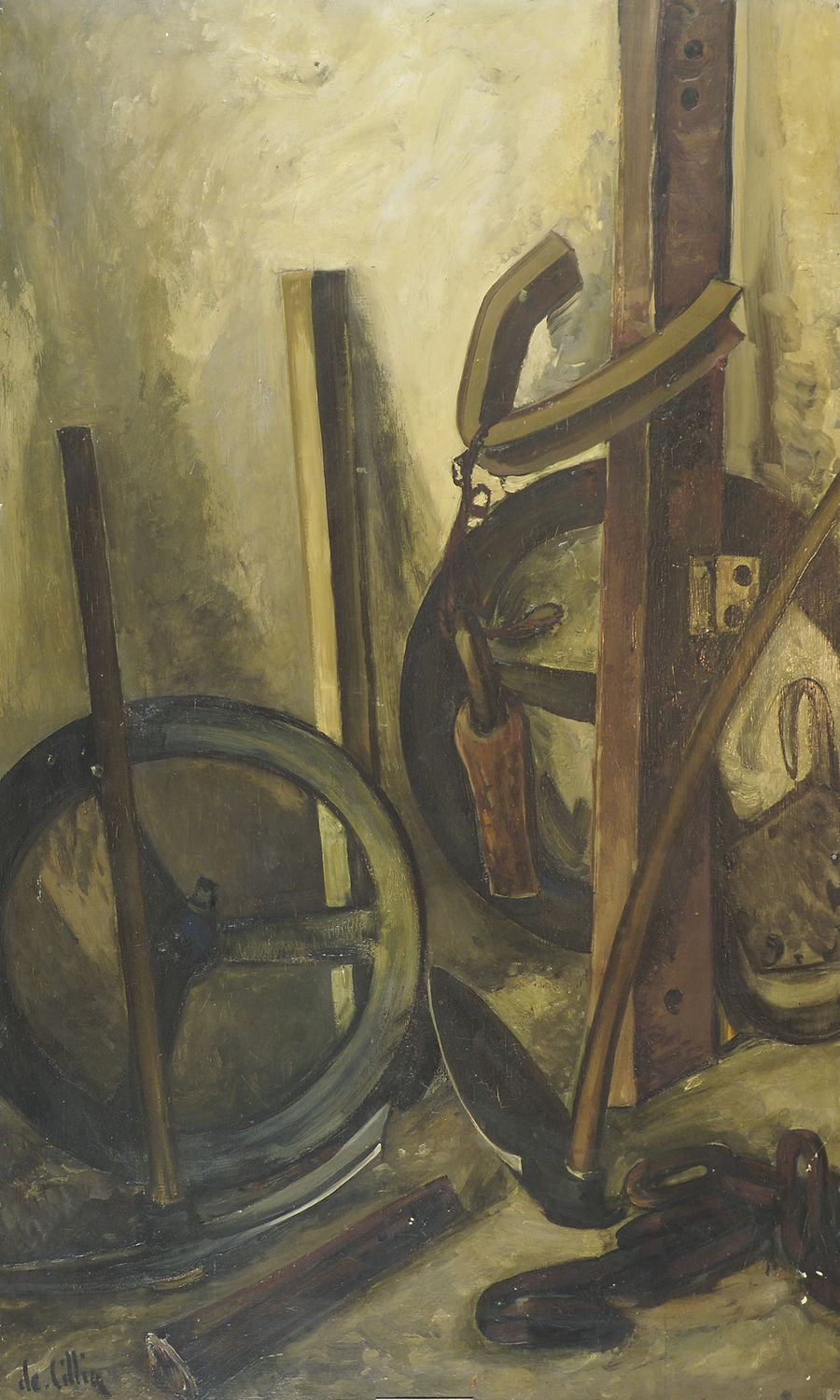 Enrico De Cillia 1910-1992) "Cave del Carso" (1955) cm. 130x80 - olio su faesite Firmato b. a s. Al retro: etichetta dell'Artista con titolo e data dell'opera; etichetta IX Premio Suzzara ed altre varie etichette.