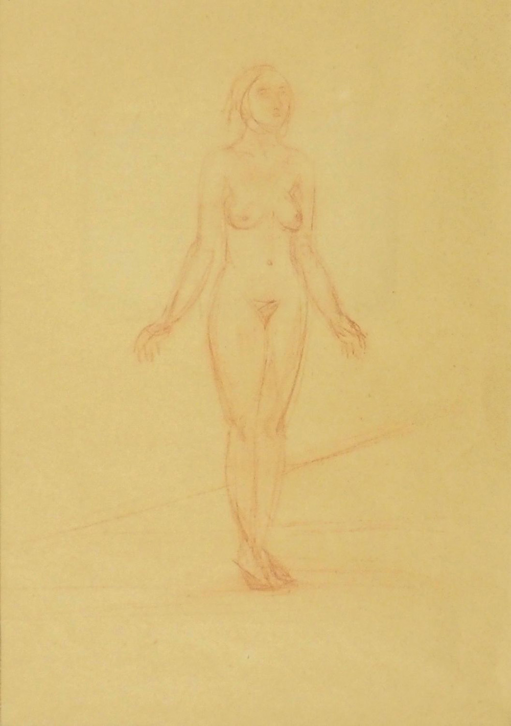Pio Semeghini (attr.) 1878-1964 "Nudo femminile" cm. 25x17 - sangugina su carta Al retro autentica della moglie con timbro.