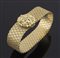 Bracciale a maglia larga in oro giallo con chiusura floreali ricoperta da brillanti. Gr. 74.