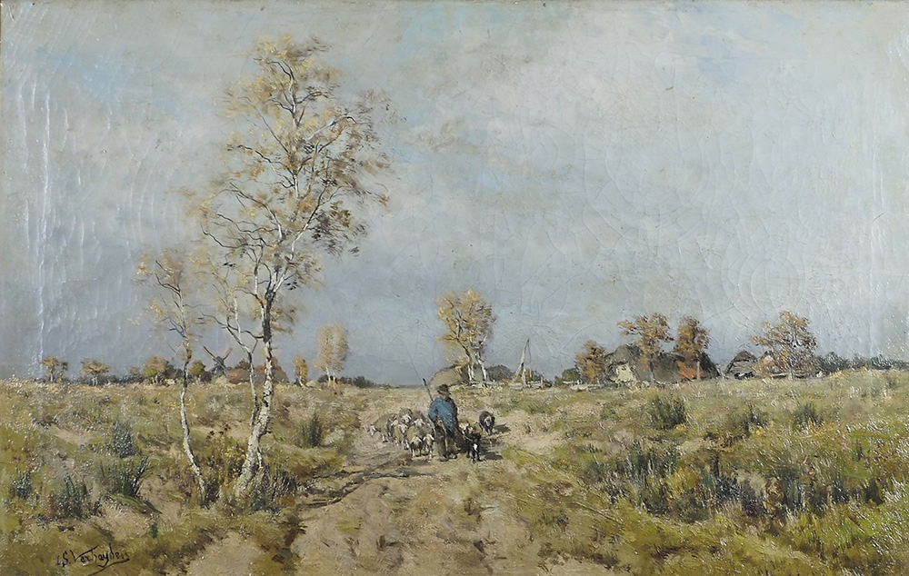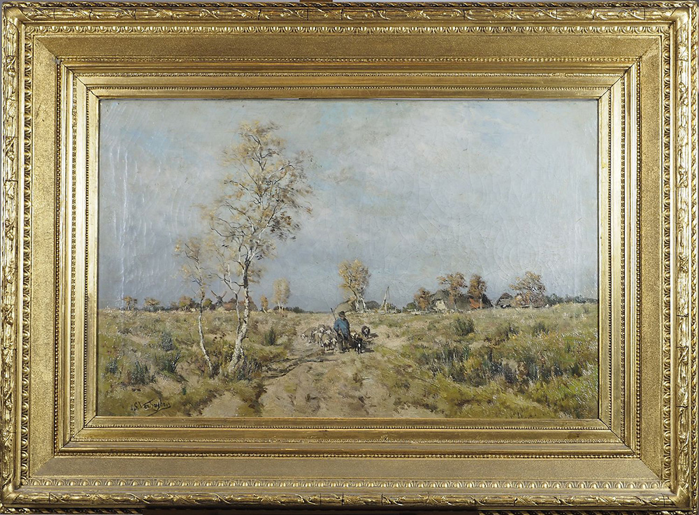 Isidore Verheyden 1846-1905 "Paesaggio con pastore" cm. 45x72 - olio su tela Firmato b. a s.