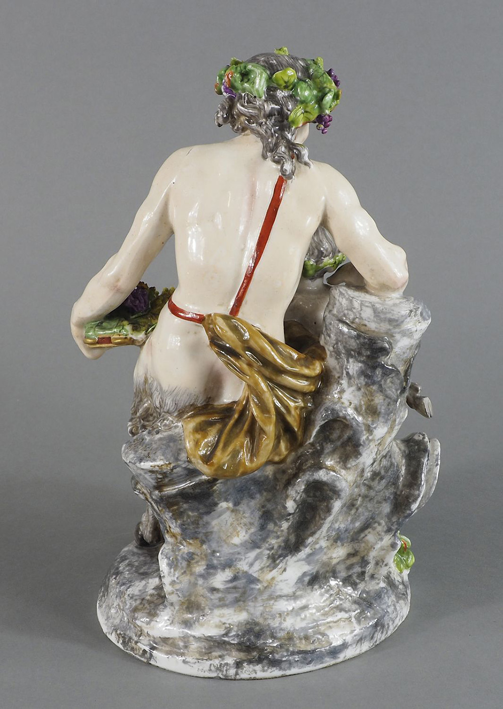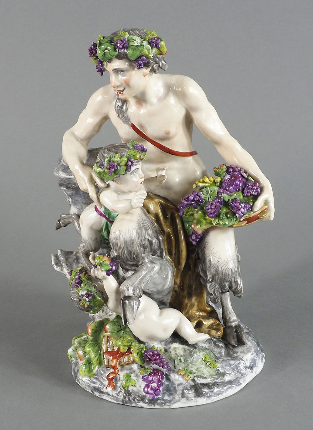 Scultura in porcellana policroma raffigurante famiglia di fauni. Reca il...