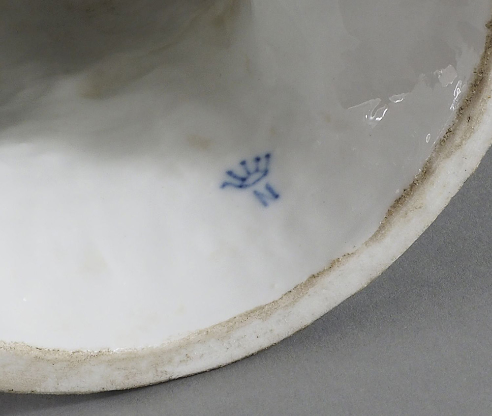 Scultura in porcellana policroma raffigurante famiglia di fauni. Reca il marchio N con corona, I metà XIX secolo. H. cm. 25.
