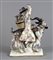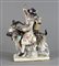 Meissen Spade: scultura in porcellana policroma raffigurante figura a cavallo. I metà XIX secolo. H. cm. 22. (mancanza).