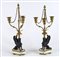 Paio di candelabri a 3 luci in bronzo a 2 colori, su base in alabastro. XIX...