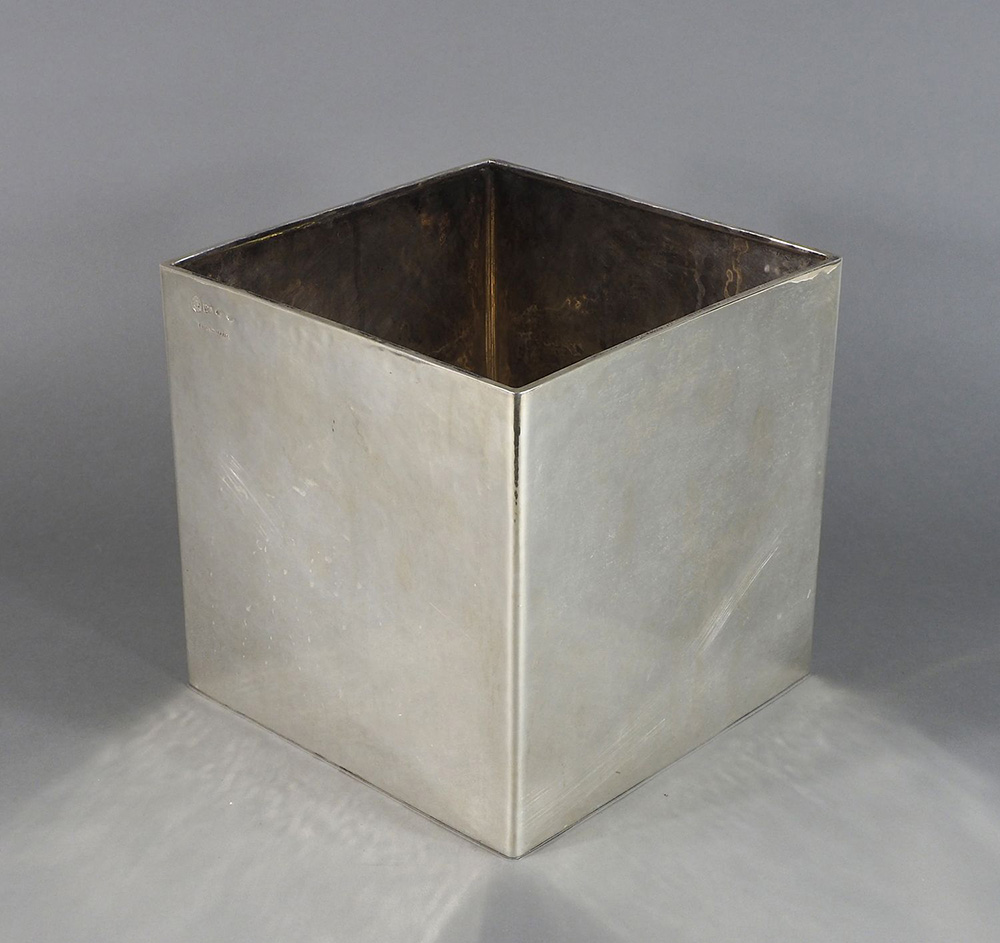 Brandimarte: grande contenitore in aergento martellato a forma di cubo. cm....