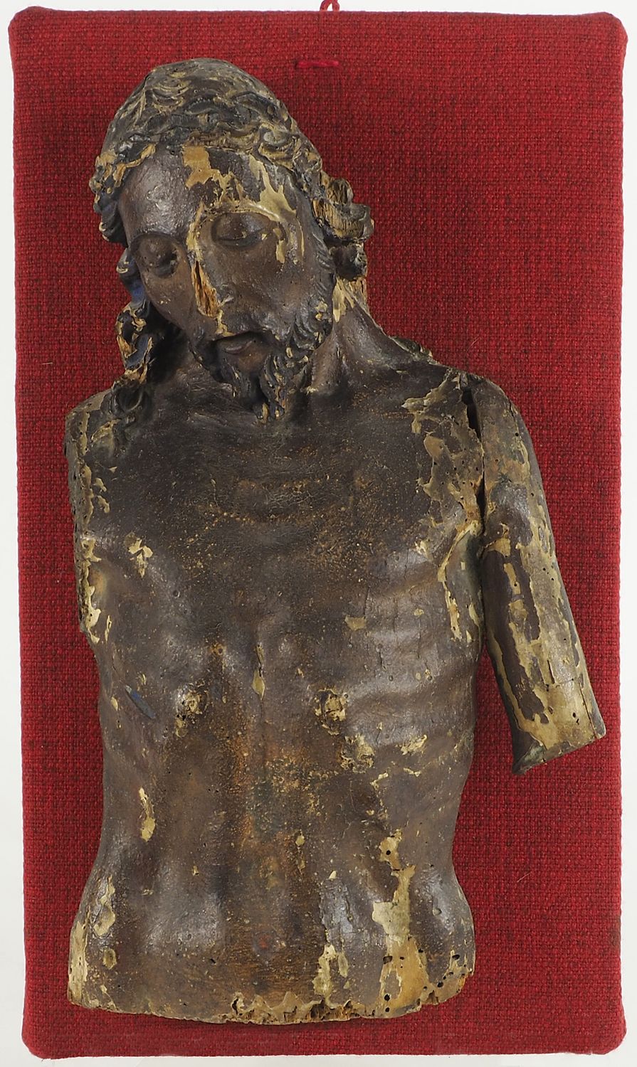 Maestro del XVI secolo Scultura in legno finemente scolpito raffigurante Cristo. H. cm. 37. Prov.: collezione Basilio Trieste.