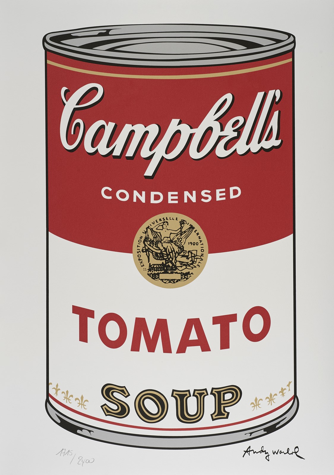 WARHOL ANDY (1928 - 1987) Campbell's Soup. Silkscreen. Cm 50,00 x 70,00. 1715/2400. Edition lower left in pencil. Signature lower right in print. At the back CMOA stamp.