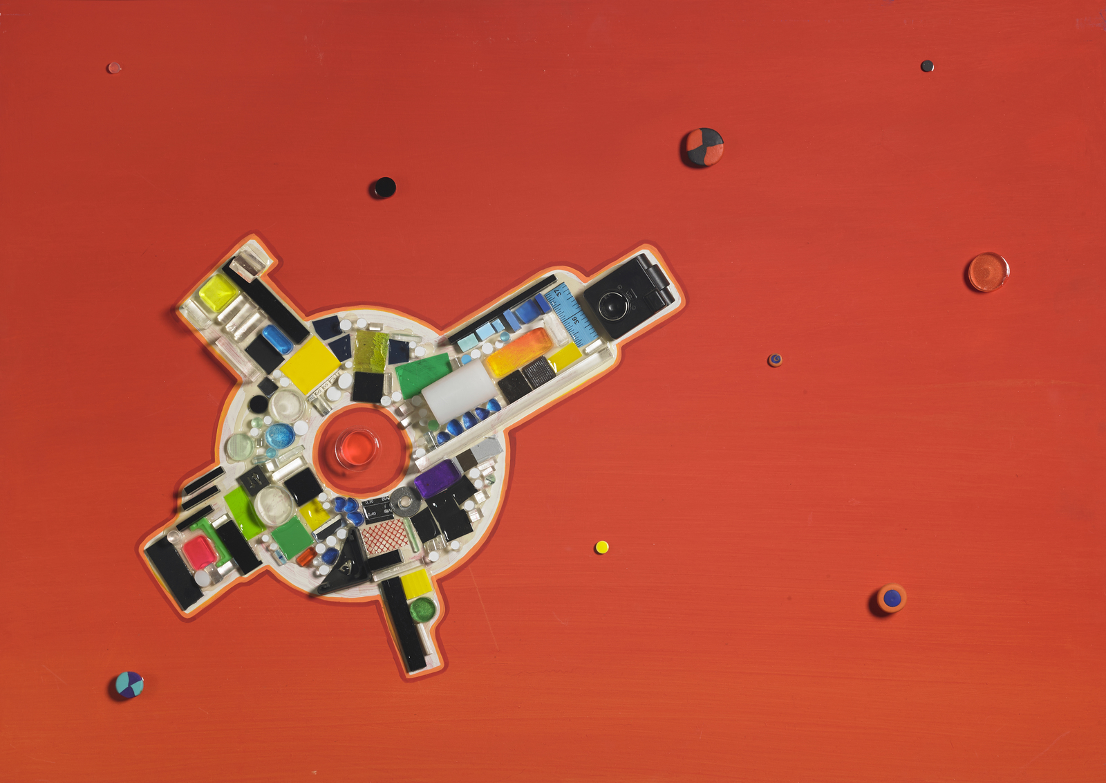 NUCARA RENZO (n. 1955) Lifeboat Red. 2013. Collage su tavola. Cm 86,00 x 60,00. Al retro titolo, firma e anno.