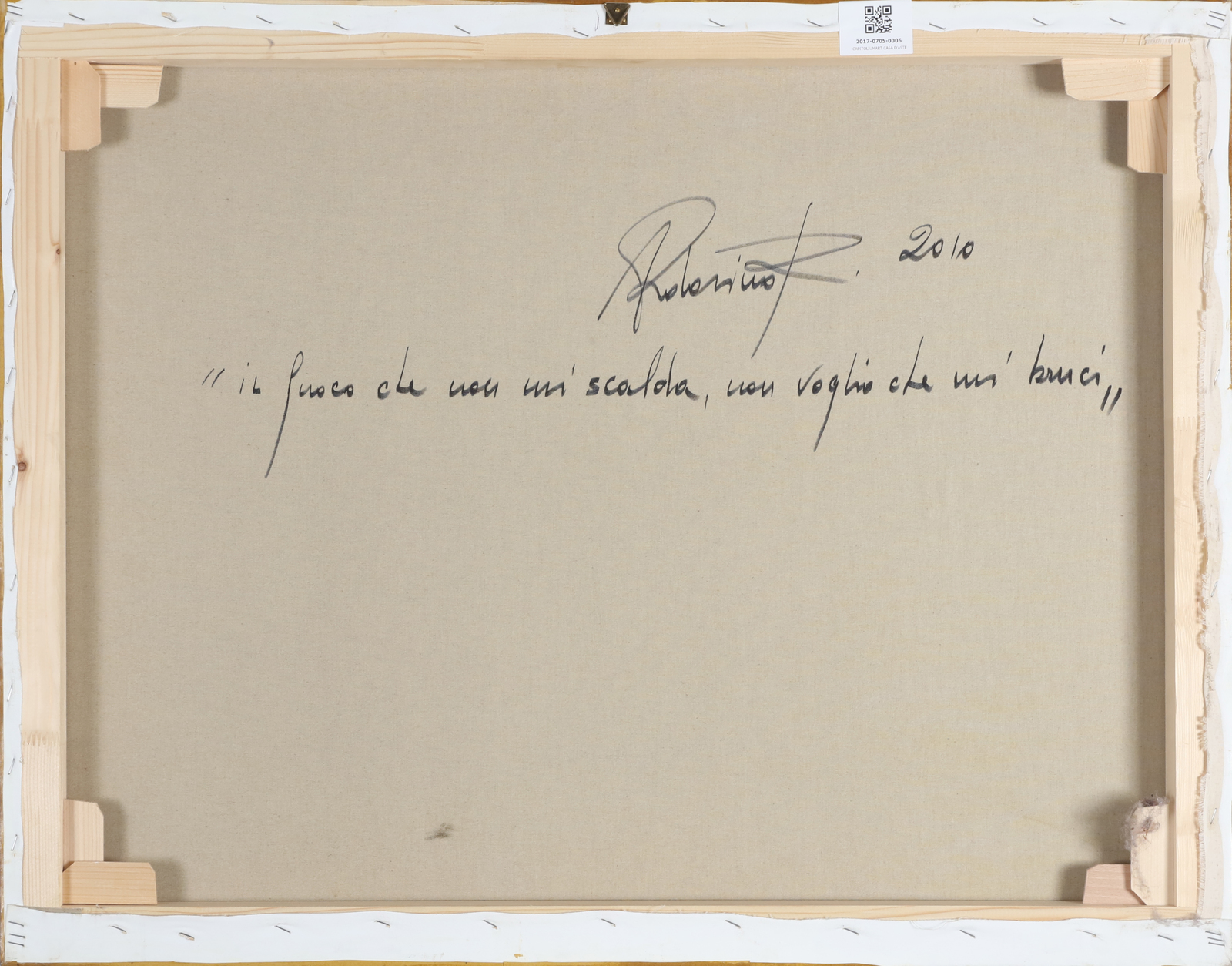 ARDOVINO ROBERTO (n. 1952) Il fuoco che mi scalda non voglio che mi bruci. 2010. Tecnica mista su tela. Cm 90,00 x 70,00. Al retro titolo, firma e anno. Autentica dell'artista su fotografia.