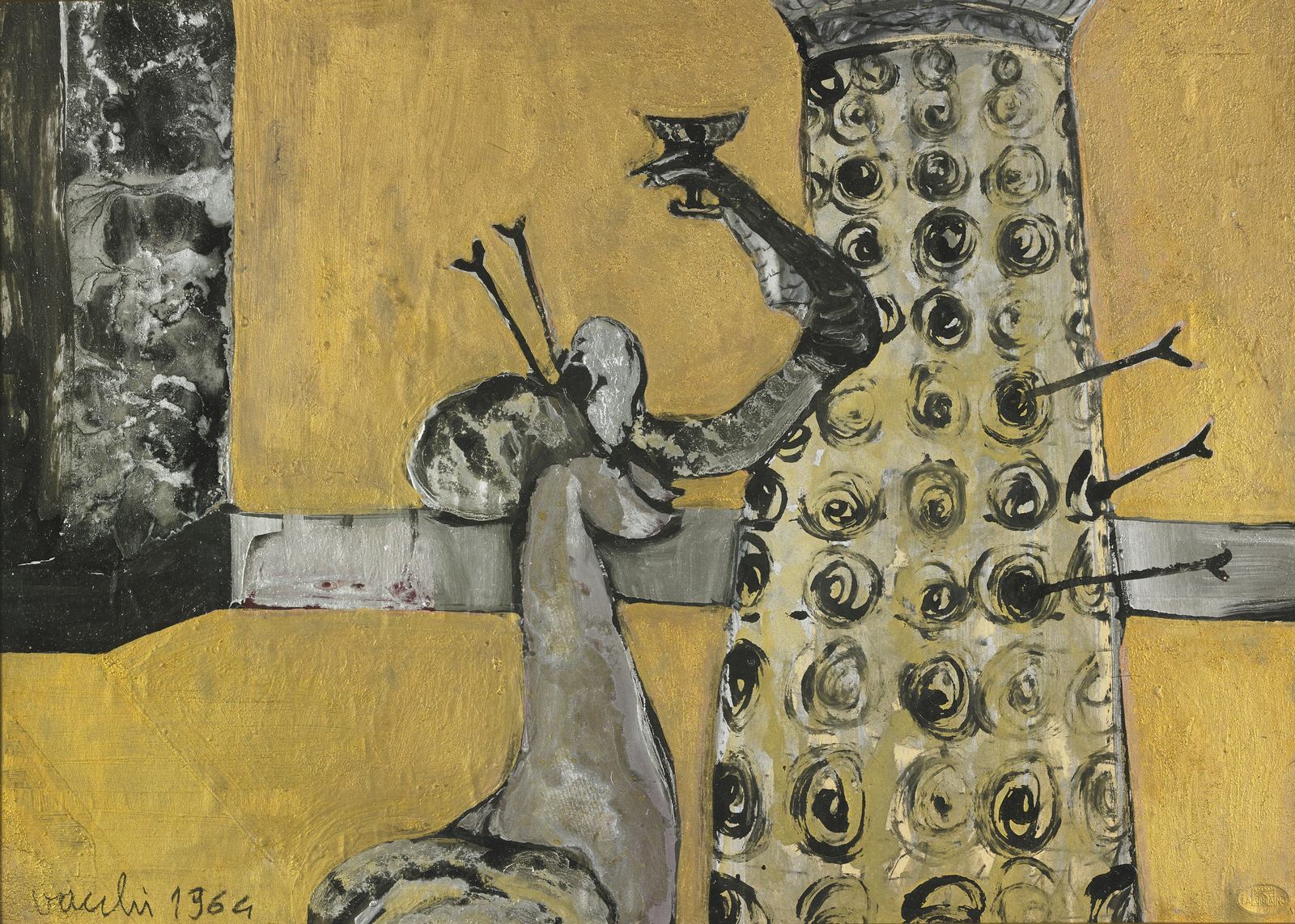VACCHI SERGIO (n. 1925) Senza titolo. 1964. Olio su cartone. Cm 70,00 x 50,00. Firma e anno in basso a sinistra. Cornice presente