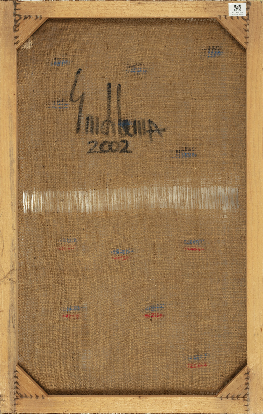 EMBLEMA SALVATORE (1929 - 2006) Senza titolo. 2002. Tecnica mista su tela di juta. Cm 80,00 x 126,00. Al retro firma e anno. Certificato di garanzia della Casa d'arte La Clessidra, Napoli con firma dell'artista.
