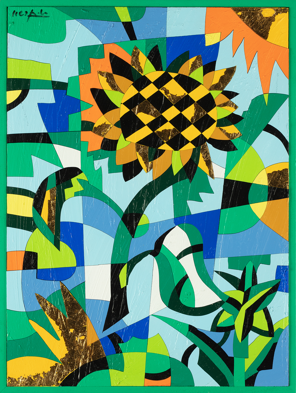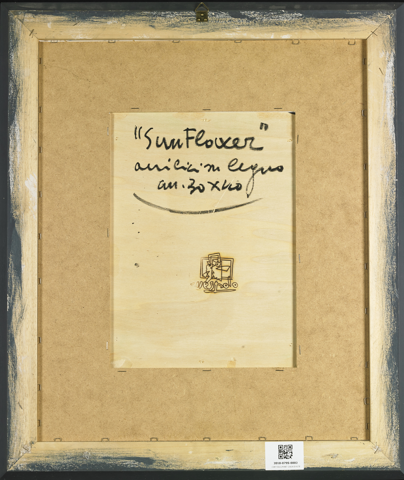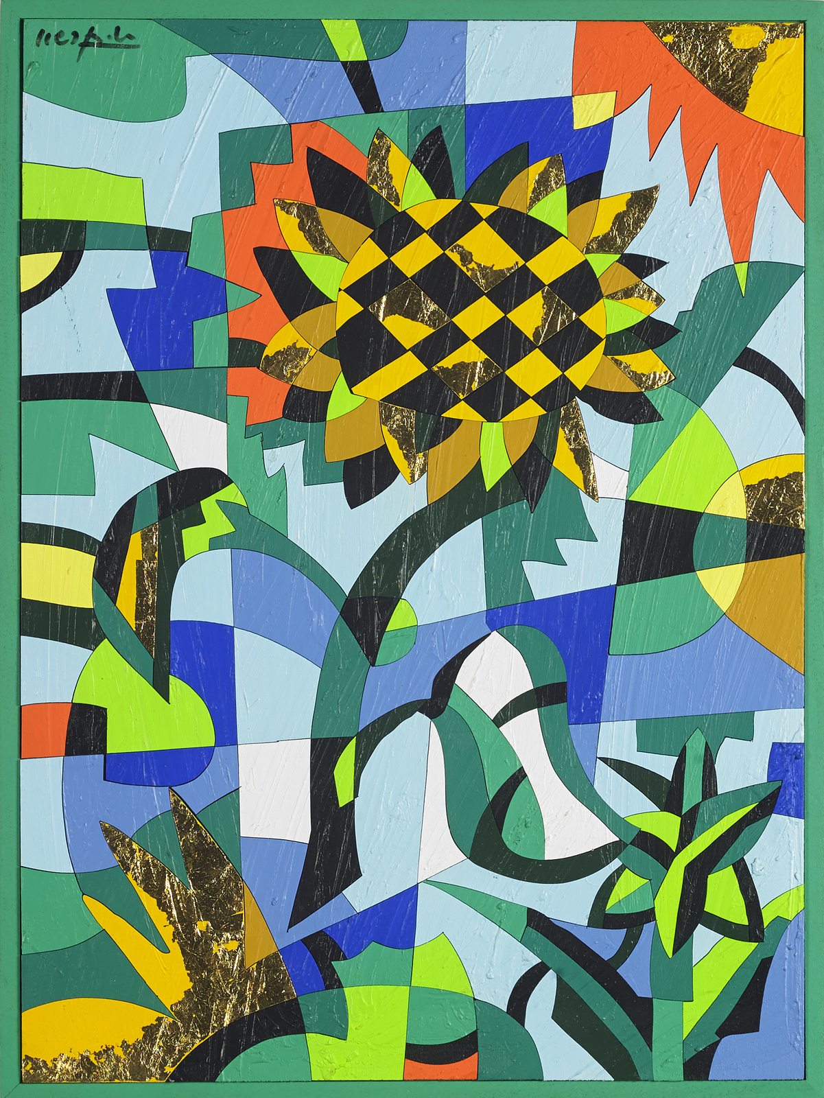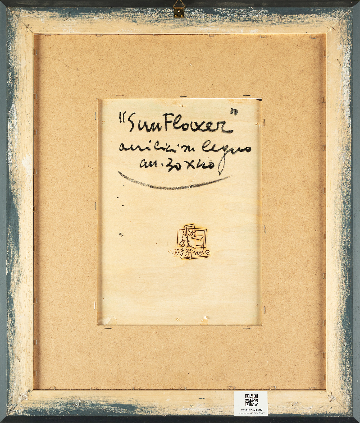 NESPOLO UGO (n. 1941) Sun Flower. acrylic on wood. Cm 30,00 x 40,00. Signature upper left, At the back title and artist's label. Artist's authenticity certificate on photo. Provenance: Arte Oggi Gallery, Settimo T.se (TO).