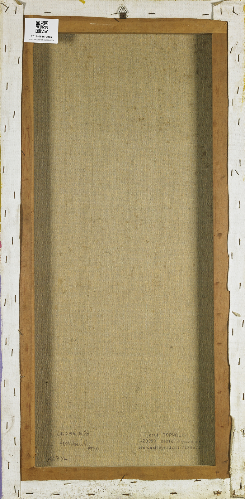 TORNQUIST JORRIT (n. 1938) OP. 285 B. 1970. Acrilico su tela. Cm 40,00 x 80,00. Al retro titolo, firma, anno e timbro dell'artista. Presenta difetti. Provenienza: Galleria Team Colore, Milano.