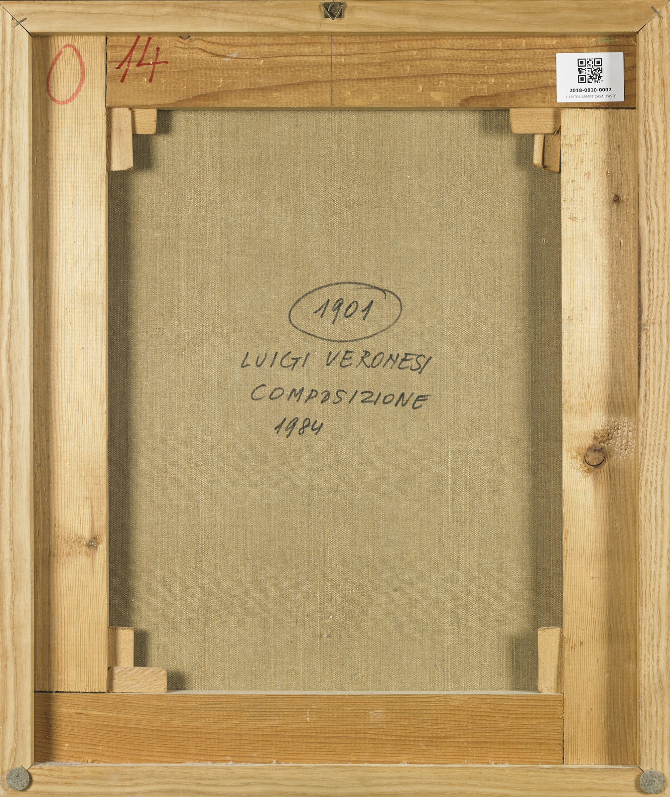 VERONESI LUIGI (1908 - 1998) Composition. 1984. Mixed media on canvas. Cm 60,00 x 50,00. Signature and year lower right. At the back title, signature and year.