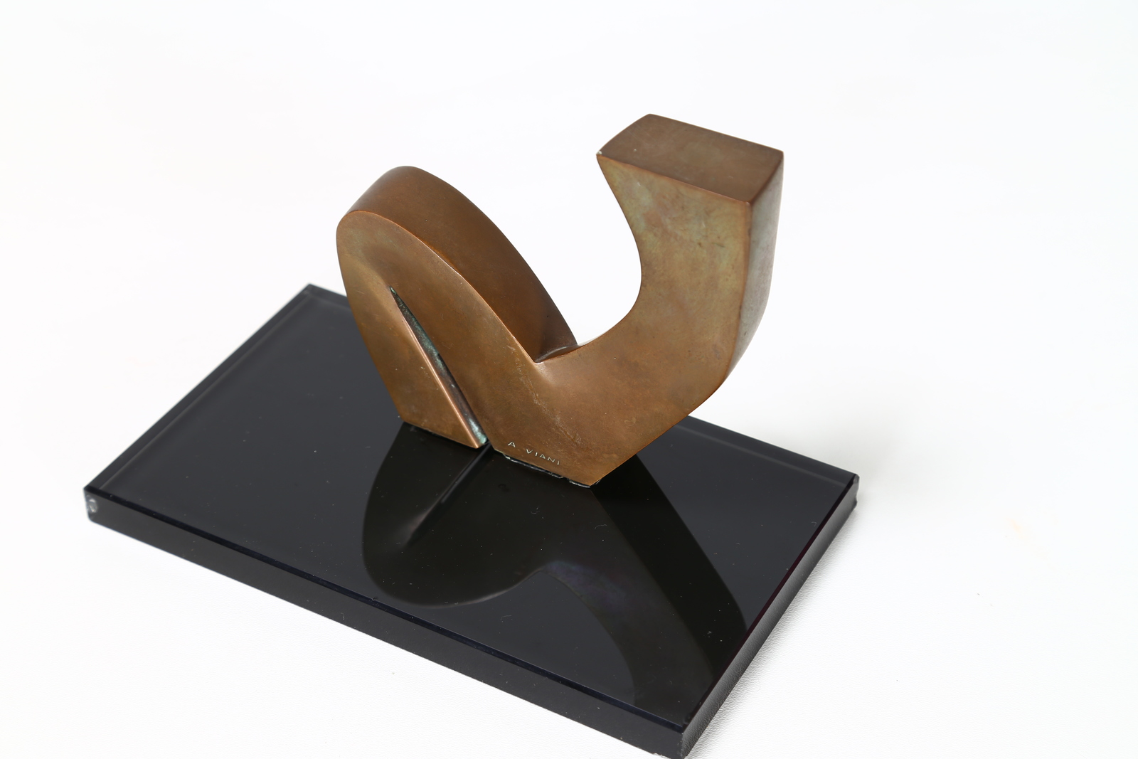 VIANI ALBERTO (1906 - 1989) Senza titolo. Scultura in bronzo fuso a cera persa. Cm 14,00 x 12,00 x 3,00. XXI/XXX. Tiratura e firma incise alla base. Opera staccata dalla base in vetro.