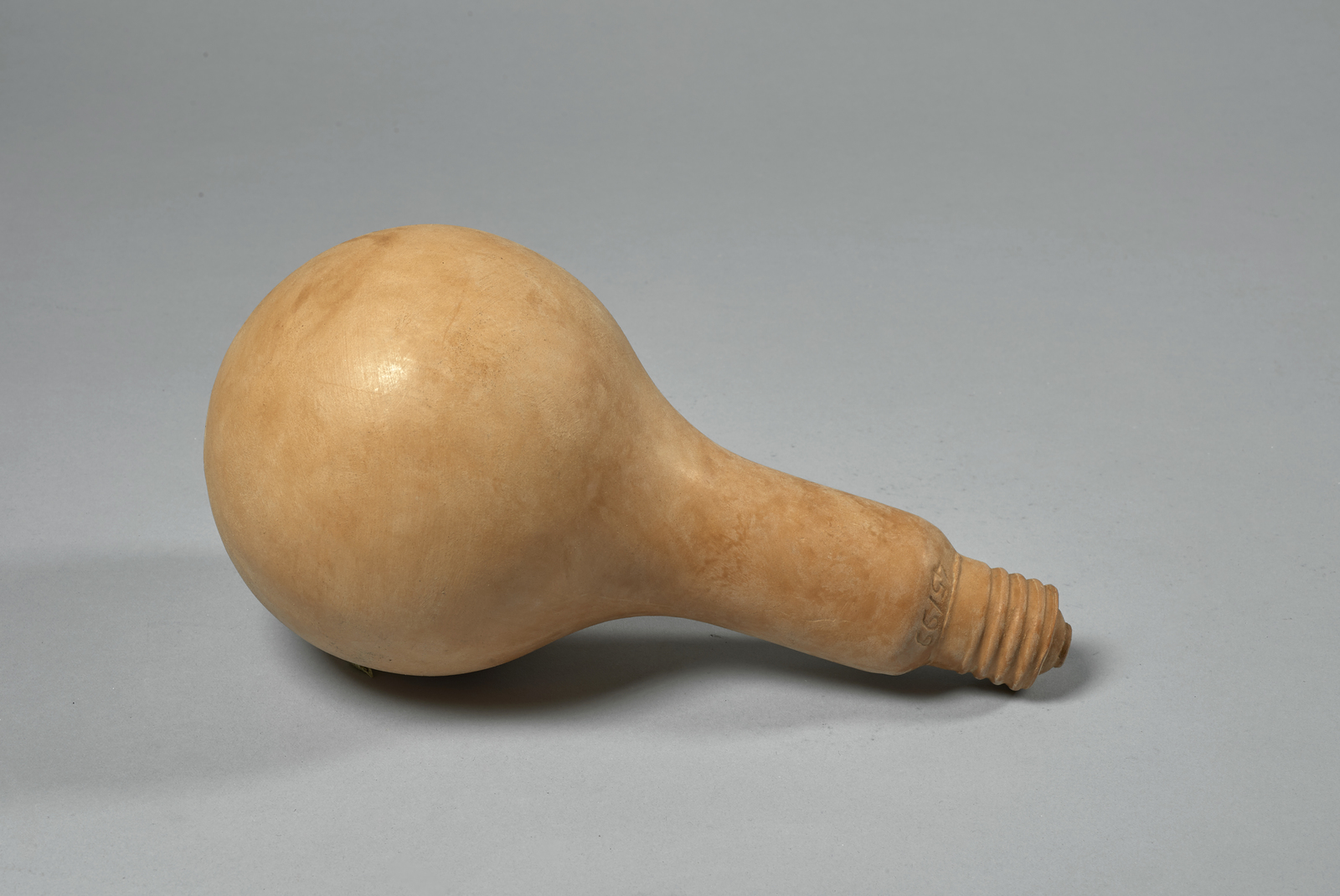 HARLOFF GUY (1933 - 1991) The lightbulb. Terracotta. Cm 13,00 x 26,00. 45/99. Tiratura incisa in basso. Riproduzione della lampadina Osram da 1000 W eseguita in terracotta in 99 esemplari numerati nel laboratorio Rossicone, Milano.