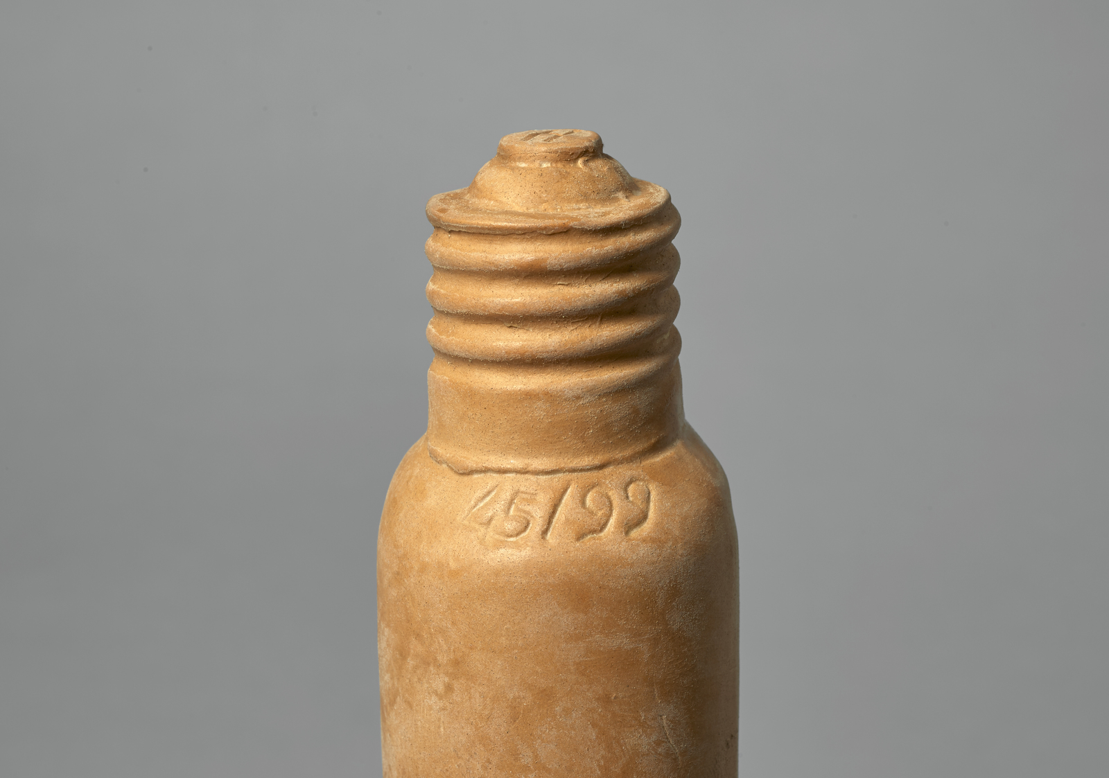 HARLOFF GUY (1933 - 1991) The lightbulb. Terracotta. Cm 13,00 x 26,00. 45/99. Edition engraved lower. Osram lamps reprodaction 1000W in terracotta at Rossicone Study, Milan.