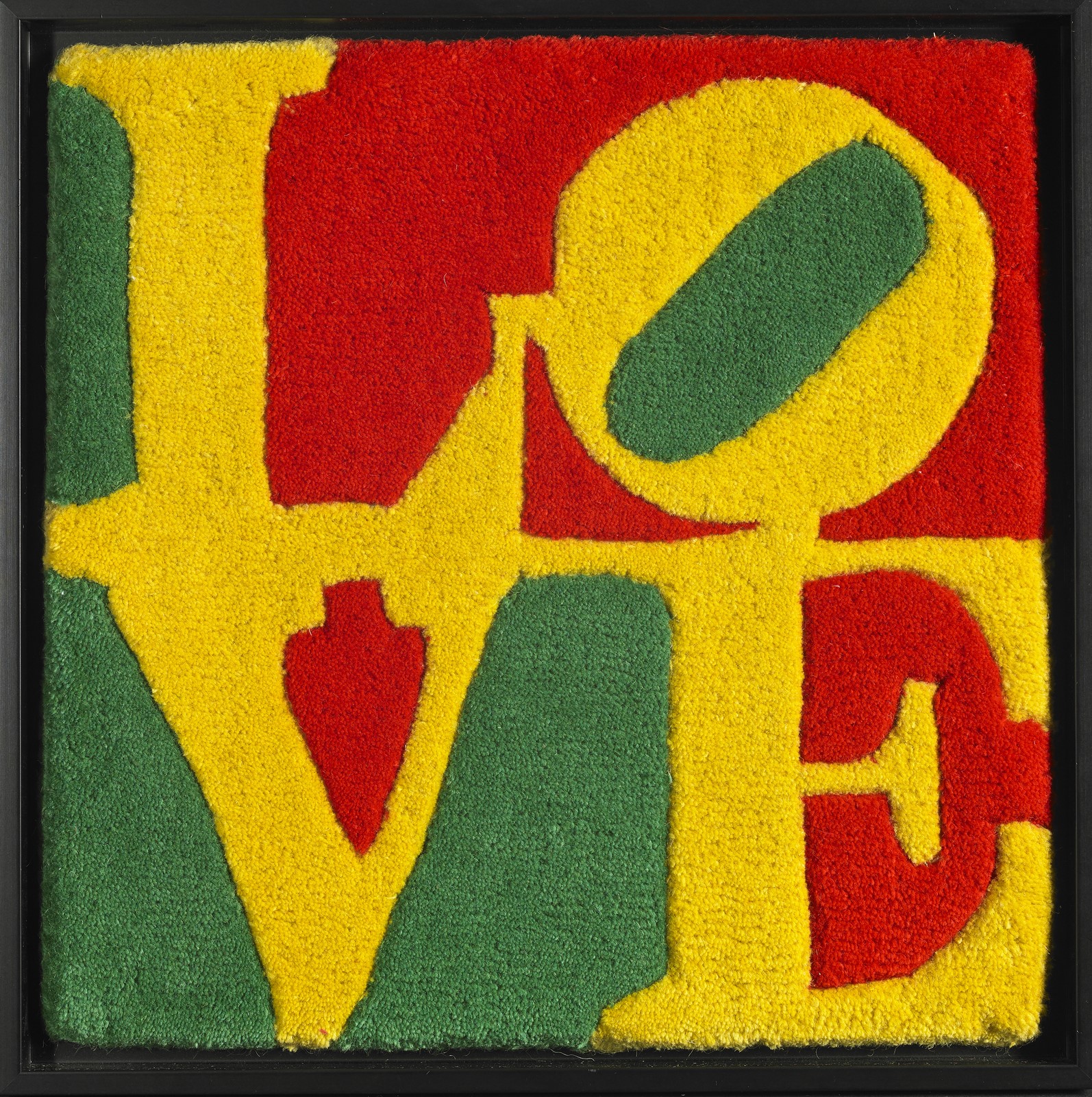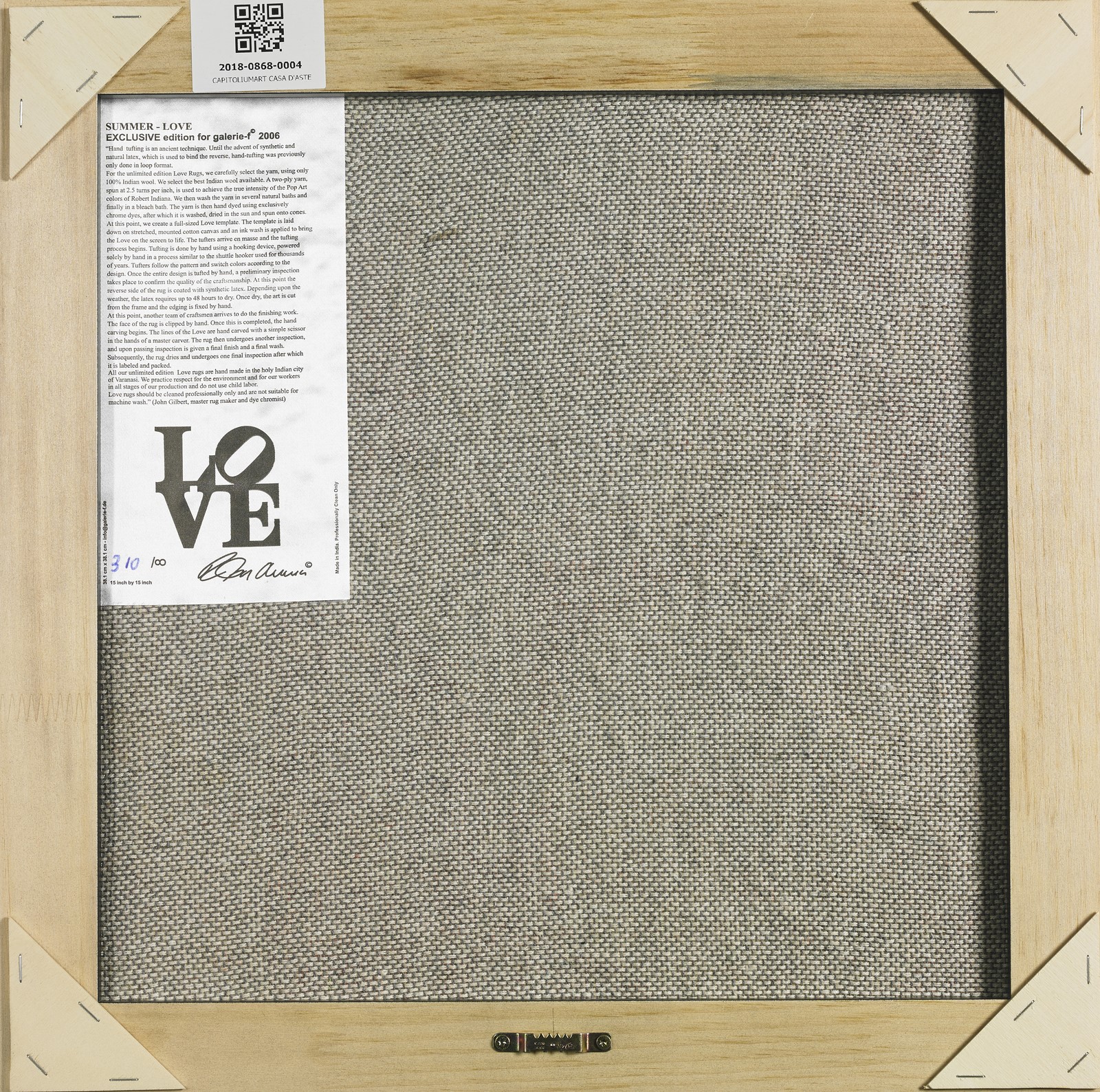 INDIANA ROBERT (n. 1928) Summer Love. Carpet. Cm 39,00 x 39,00. N.310. At the back Galerie-F label with edition and artist's signature in print. Limited edition for Galerie - F, Kranenburg, 2006.