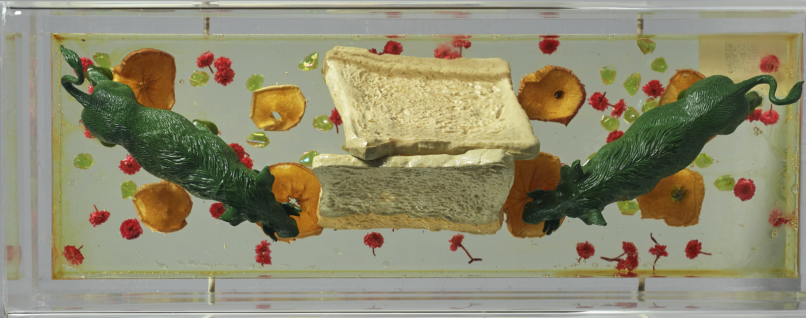 SWEETLOVE WILLIAM (n. 1949) Two Cloned Green Wild Boars. 2006. Inclusione su resina. Cm 46,00 x 17,00 x 16,00. Autentica dell'artista su fotografia,
