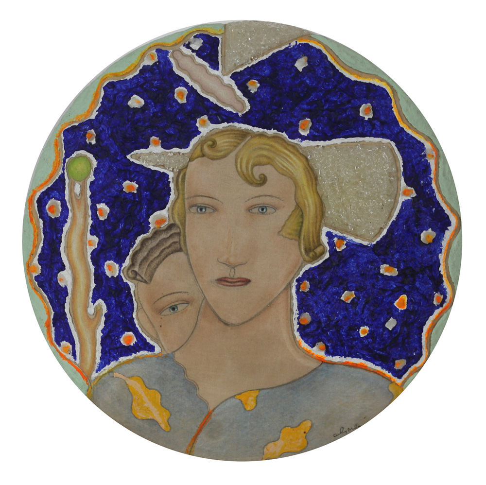 LUCA ALINARI, Alter ego, Tecnica mista su tavola Anno 2004 Diam.30 Al verso etichetta con dati opera e firma Firmato in basso al centro