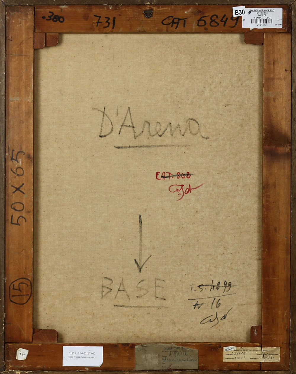FRANCESCO D'ARENA, Senza titolo, Olio su tela Anni 50 Dim.70x50 Al verso misure e firma Firmato in basso a dx