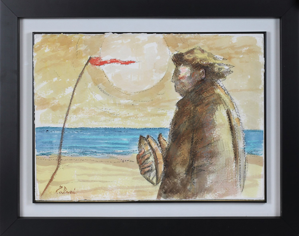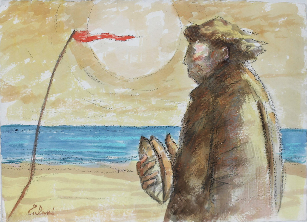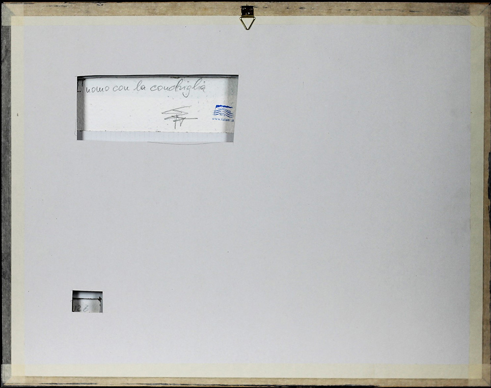 GIAMPAOLO TALANI, L'uomo con la conchiglia, Tecnica mista su carta Anno 2015 Dim. 35x50 Opera pubblicata sul libro “Il Talani di carta” a cura di Archivio Nordest Edizioni Piazza Dant3 Autentica su foto dell'Artista Al verso titolo e firma Firmato in basso a sx