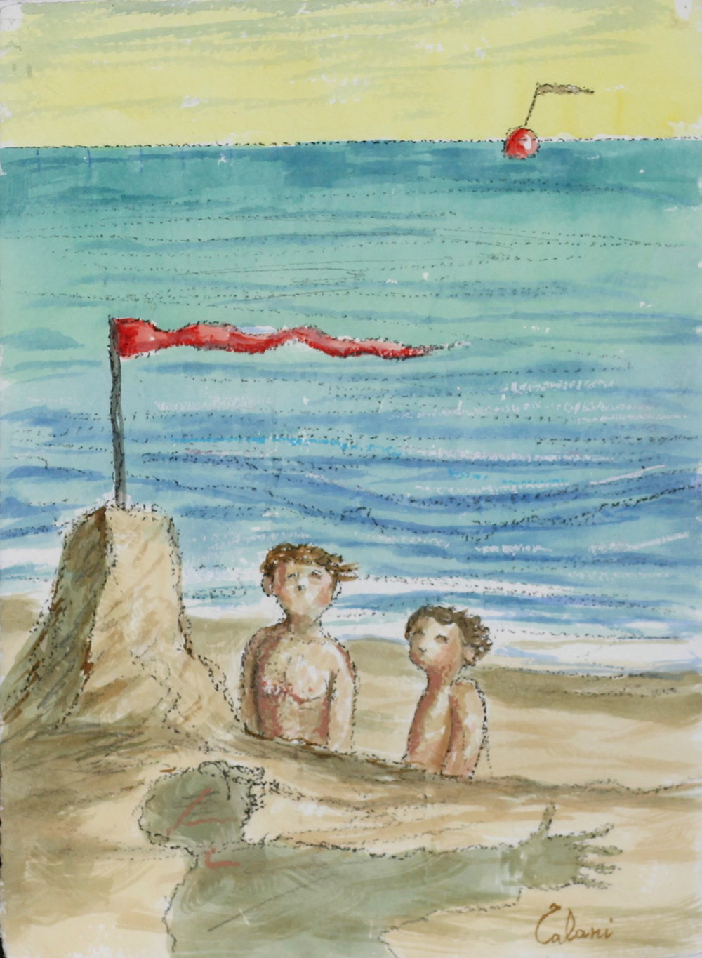 GIAMPAOLO TALANI, Un castello di sabbia, Tecnica mista su carta Anno 2015 Dim. 50x35 Opera pubblicata sul libro “Il Talani di carta” a cura di Archivio Nordest Edizioni Piazza Dant3 Autentica su foto dell'Artista Al verso titolo e firma Firmato in basso a dx