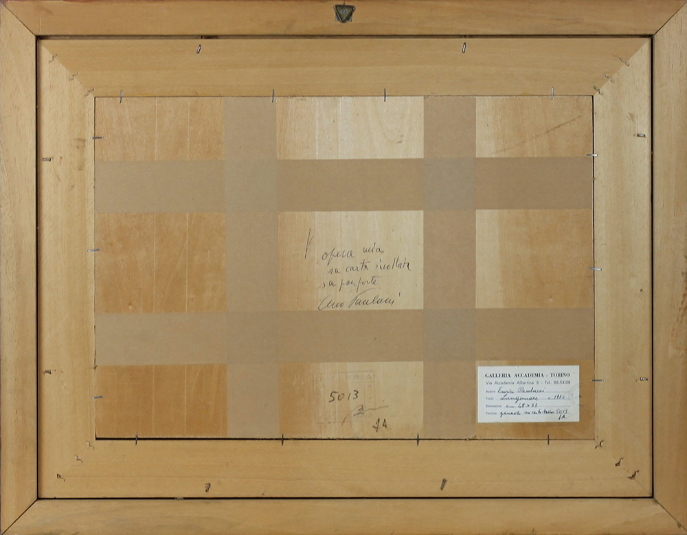 ENRICO PAOLUCCI, Lungomare, Gouache su carta/tavola Anno 1970 Dim.33x48 Autentica su foto dell'artista Al verso etichetta con dati Firmato in basso a dx