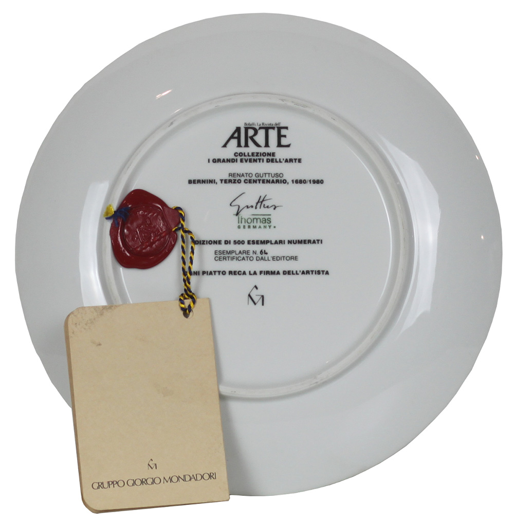 RENATO GUTTUSO, Bernini, terzo centenario, 1680-1980, Piatto in ceramica " I...