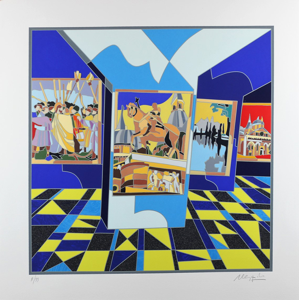 UGO NESPOLO, Padova, Serigrafia e collage Dim.70x70 Esemplare 9/99 Tiratura...