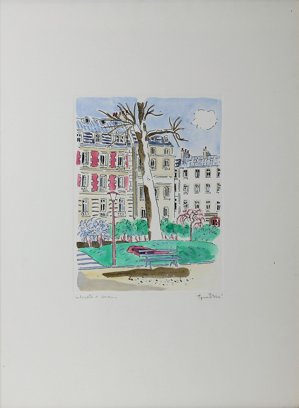 ORFEO TAMBURI, Senza titolo, Litografia acquarellata a mano Dim. 60x45 Tecnica in basso a sx Firmato in basso a dx