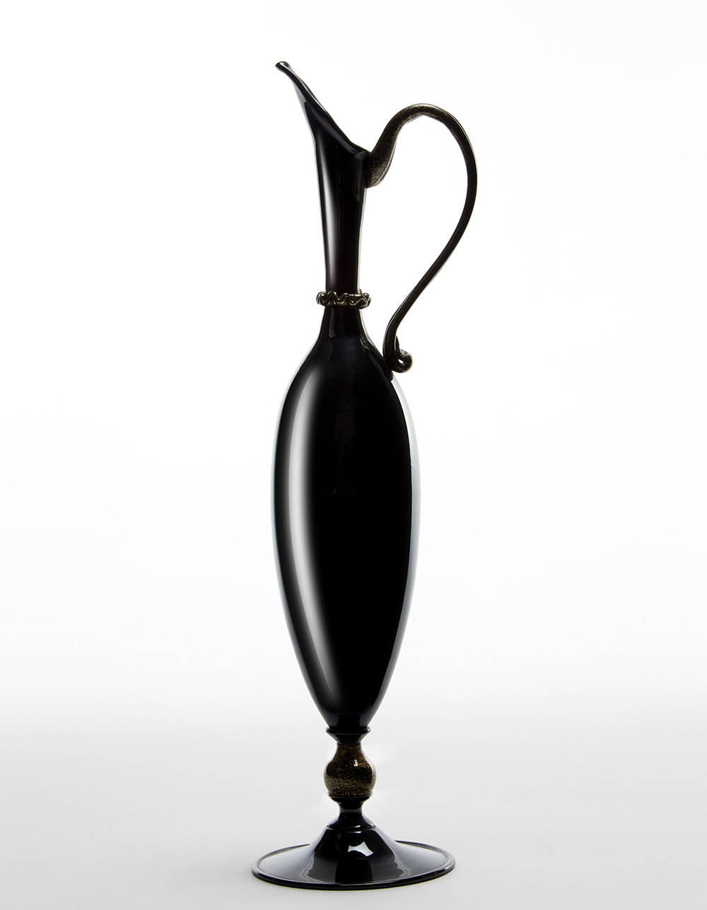 Manifattura di Murano Brocca in vetro ametista scuro fortemente iridato e con...