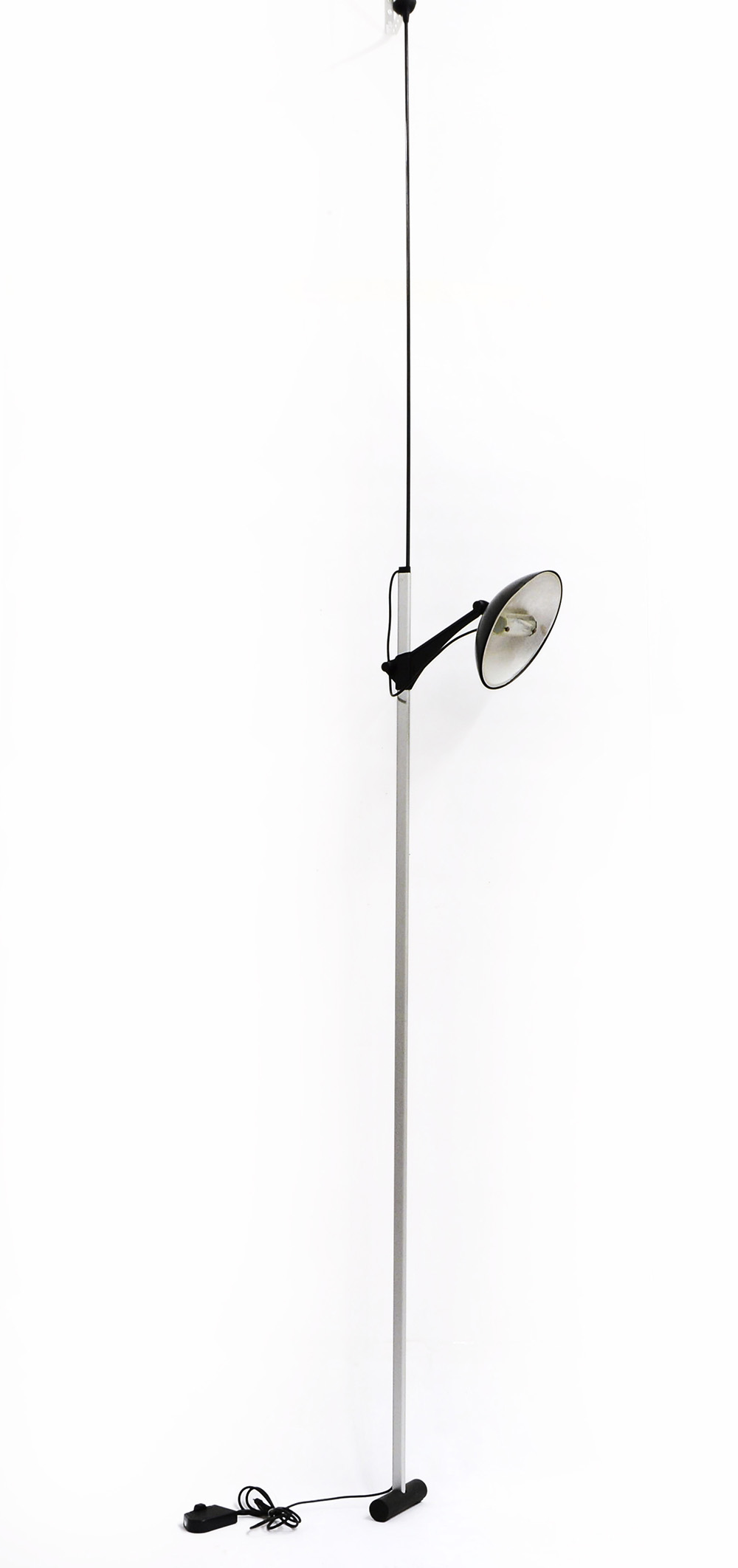 * Floor lamp with dimmer model "Tens". Italy, 1990s. Anodized aluminum, diffuser in black lacquered aluminum. (h 260/340 cm.)