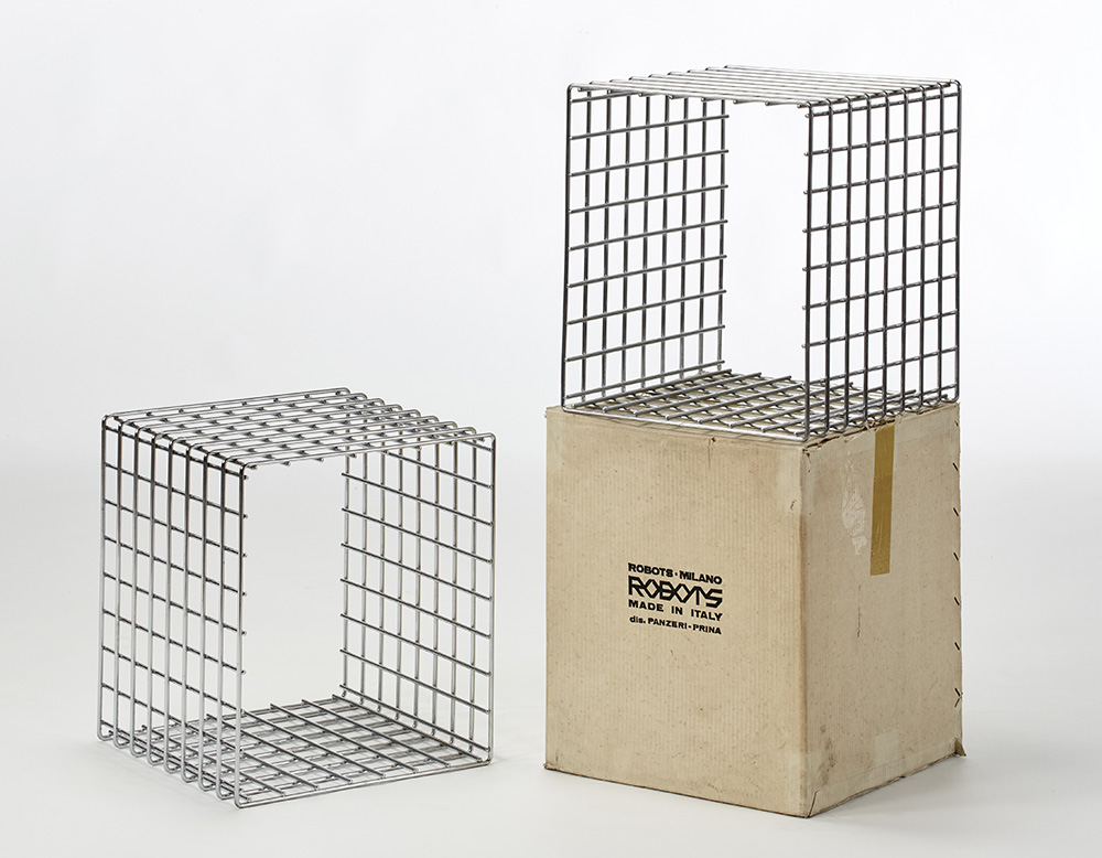 Panzeri e Prina Due sgabelli in rete di acciaio. Produzione Robots, Milano,...