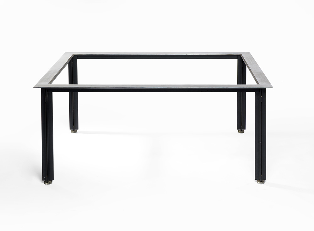 Tavolo basso modello "T10 Fasce Cromate". Produzione Azucena, Italia, anni '50. Struttura in metallo laccato nero e piedini cromati. (cm 120x50x100) (difetti e mancanze)