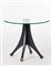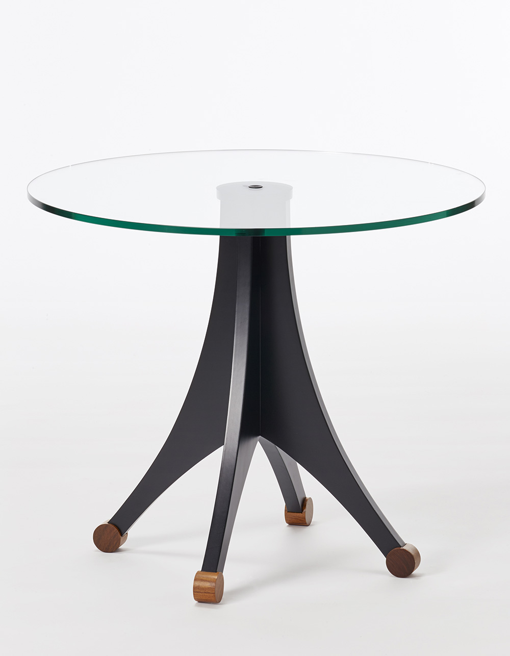 * Small table model "Progetti". Produced by Giorgetti, Milan, recent production. Structure in black lacquered wood and glass top. (h 50 cm.; d 58 cm.)