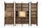 Libreria in legno massello e impiallacciato composta da tre elementi scanalati, vani a giorno e cinque sportelli con fronte grissinato, di cui due a ribalta con cartella in vetro porta stampe. Italia, anni '50. (cm 173,5x230,5x41; cm 89,5x230,5x41; cm 61,5x230,5x41) (lievi difetti e mancanze)